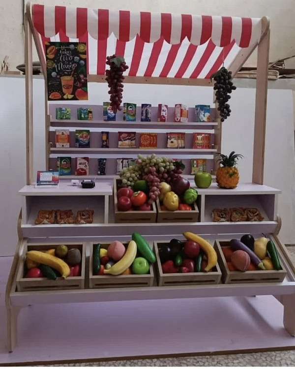 دکه هایپر مارکت و میوه یکی از جذابترین و پرطرفدارترین نوعمشاغل کودک می باشد که از جنس MDF درجه 1 تولید شده و بهترین محصول برای اشنایی با مشاغل سوپرمارکت و میوه فروشی می باشد بسیاری از کودکان علاقه ی زیادی به بیرون رفتن و خرید کردن دارند اما بعضا امکان ارتباط گرفتن و مطرح کردن خواسته ی خود را ندارند به این دلیل شما میتوانید با یک کار دسته جمعی اعتمادبه نفس کودکان را بالا برده و نحوه خرید کردن ، انواع میوه ها و کالاهای سوپرمارکتی را نشان دهید .