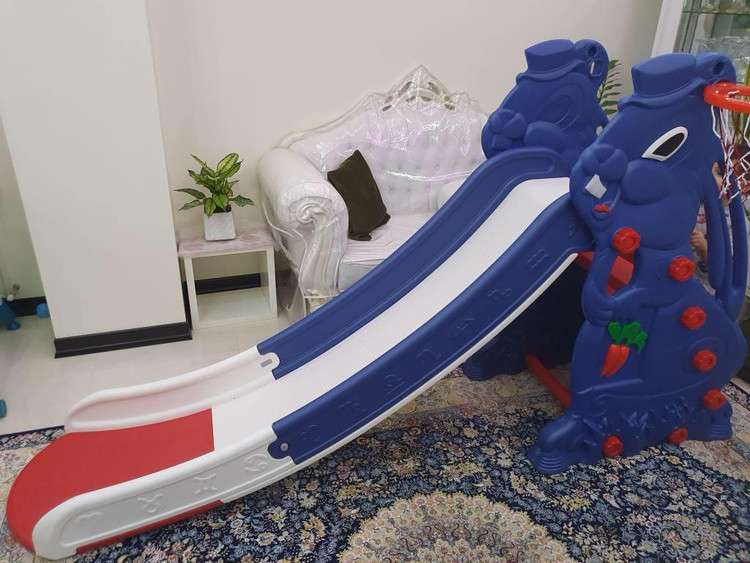 سرسره کودک مدل خرگوش نسل جدید از سرسره کودک می باشد که از جنس پلی اتیلن مرغوب تولید شده است این سرسره کودک بی نظیرترین سرسره کودک موجود در بازار می باشد که جایگزین و نمونه بهتر سرسره موزی می باشد این سرسره کودک تفاوتی که با سرسره موزی دارد این است که طول سرخور این مدل بیشتر از طول سر خورسرسره موزی می باشد به طوریکه طول سرخور سرسره موزی حدودا 190 سانتی متر می باشد و طول سر خور ، سرسره خرگوش 220 سانتی متر می باشد به همین دلیل بسیار مناسب برای کودکان 1 تا 9 سال می باشد ، سرسره کودک مدل خرگوش دارای 4 پله با فاصله های استاندراد و طراحی منحصر به فرد می باشد که از این سرسره میتوان به عنوان سرسره نشکن نیز نام برد مقاومت و استحکام این سرسره بسیار زیاد می باشد و دارای دو دسته در بدنه است که کودک میتواند به عنوان دسته کمکی از آن استفاده کند در بسته بندی این سرسره کودک یک حلقه بسکتبال و یک عدد توپ نیز قرار دارد که کودک دلبند شما میتواندعلاوه بر سرسره بازی پرتاب توپ را نیز امتحان کند قسمت سرسره این کار همانند سرسره کودک مدل دلفین دوتیکه می باشد
